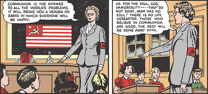 A: At heart, “Futuristic” is a book about popular entertainment. It covers movies, TV, comic books, trading cards, action figures, games. It celebrates “Tom Corbett: Space Cadet” and “Fireball XL5” and “Lost in Space” and the original “Star Trek” and adorable little Japanese toy robots. But politics are unavoidable. Some of the period’s best sci-fi movies — “The Day the Earth Stood Still” (1951), “Invasion of the Body Snatchers” (1956), “Dr. Strangelove” (1964) — boldly took positions, expressing them through art. The same can be said for an earlier sci-fi film, Fritz Lang’s silent masterpiece “Metropolis” (1927). Check it out.